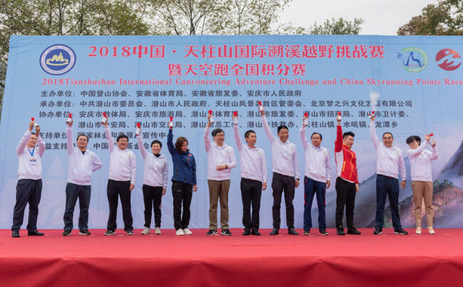 ? ? 10月14日上午8時30分,2018中國?天柱山國際溯溪越野挑戰(zhàn)賽暨天空跑全國積分賽在風景如畫的安徽省安慶市潛山市天柱山景區(qū)拉開戰(zhàn)幕。這是潛山撤縣設市后,在天柱山景區(qū)打造的兼具競爭性和群眾基礎的又一次大規(guī)模、高規(guī)格的國際體育盛會。賽事的成功舉辦,對進一步提升天柱山及潛山市旅游城市形象,打響“全民體育、全域旅游”品牌,帶動區(qū)域經(jīng)濟社會持續(xù)健康發(fā)展具有重要意義。